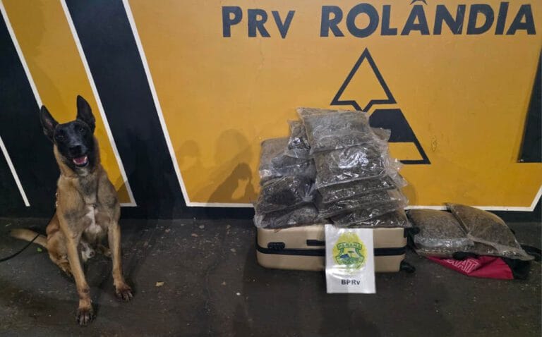 A Polícia Rodoviária Estadual (PRE) prendeu uma mulher de 27 anos com 17,4 quilos de maconha em um ônibus fiscalizado em Rolândia, nesta quarta-feira (1º).