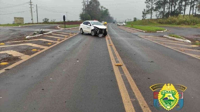 A colisão transversal ocorreu por volta das 14h20, no km 104+450m, no trevo de acesso secundário de Ivaiporã.