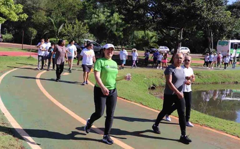 A Caminhada da Melhor Idade ocorreu no Parque Jardim Botânico, onde os participantes desfrutaram da natureza, enquanto se exercitavam e ouviam o barulho dos pássaros com um dia lindo.