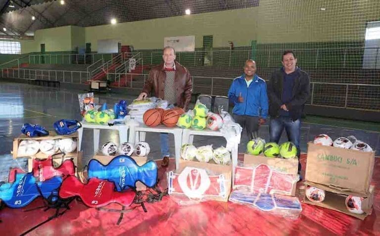 Os kits foram recebidos pelo prefeito Carlos Gil, secretário municipal de Esporte, Silvinho Santos, e pelo auxiliar administrativo Renan Bittencourt, e são compostos, por exemplo, por materiais relacionados às modalidades de basquetebol, handebol, voleibol, futsal, vôlei de areia, artes marciais – iniciando com karatê, e futebol de campo.