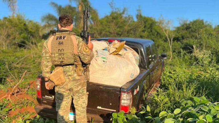 A equipe tentou realizar a abordagem, mas o motorista fugiu. Ele transitou por estradas estaduais e rurais, até acessar uma lavoura. O homem abandonou a caminhonete e fugiu a pé pela mata.