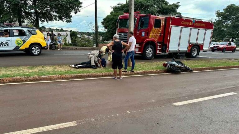 Por volta das 17 horas, a PM registrou outro acidente, desta vez na Avenida Ladislao Gil Fernandez, próximo ao Torno Ivaí, onde uma mulher foi atropelada por uma motocicleta Honda Biz. Tanto o motociclista quanto a pedestre sofreram ferimentos.