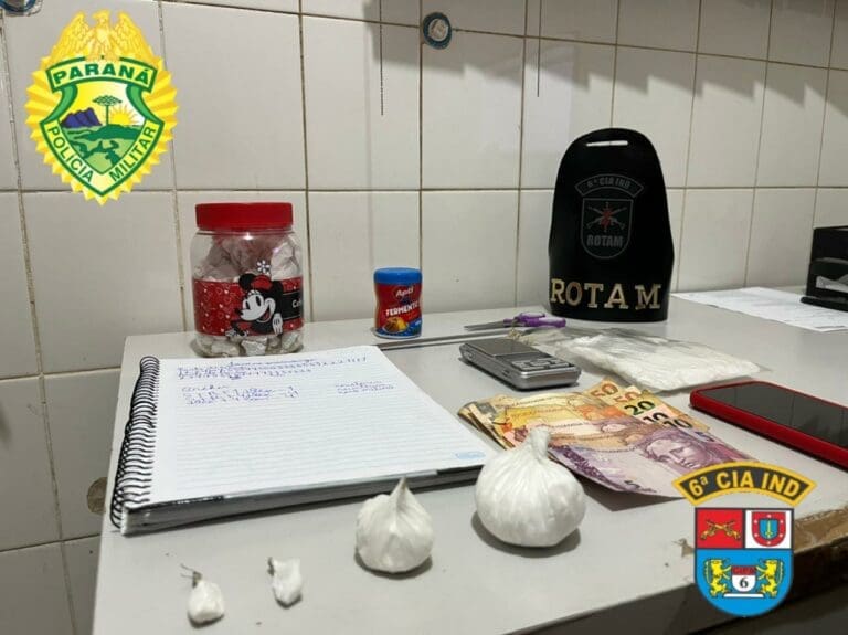 Na noite de quinta-feira (25), a equipe ROTAM durante patrulhamento pela Av. Maranhão, em Ivaiporã, visualizou o momento em que um veículo, Fiat/Strada branco, parou em frente a uma casa que é alvo de reiteradas denúncias de tráfico de drogas. O morador já foi preso anteriormente pelo crime de tráfico de drogas.