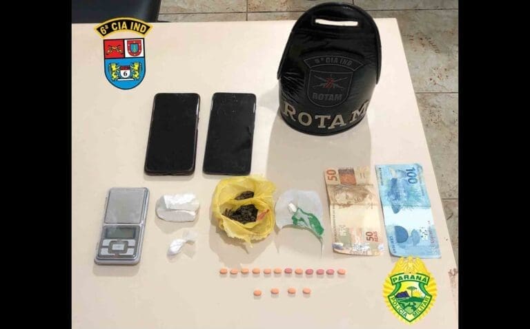 Na noite de sexta-feira (24), a equipe Rotam da 6ª CIPM realizou diligência na Rua Rio Grande Norte para verificar denúncias de tráfico de drogas em Ivaiporã. A ação resultou na prisão de dois indivíduos e na apreensão de drogas, dinheiro e outros itens relacionados ao comércio ilegal.