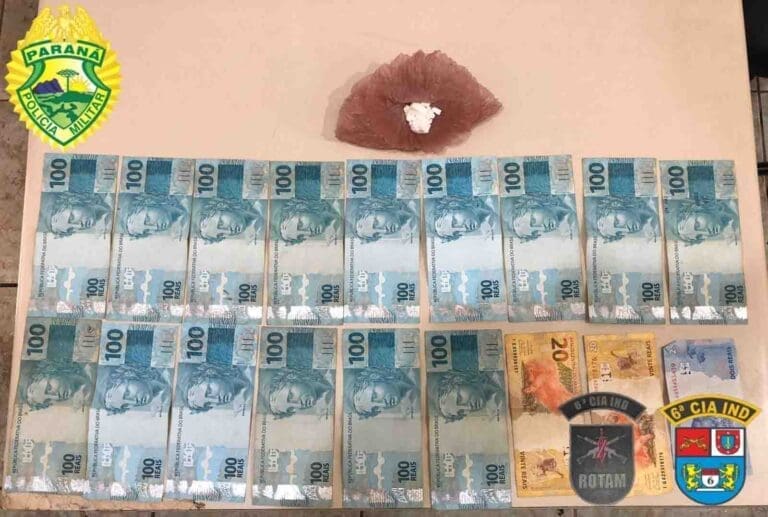 A equipe da Rotam realizou a abordagem e identificou os ocupantes do veículo. Com o motorista, de 30 anos, e o passageiro, de 32 anos, foi encontrada a quantia de R$ 1.542,00 em cédulas.