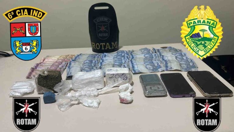 Na noite de sábado (8), uma equipe da Rotam da 6ª Companhia Independente da Polícia Militar (6ª CIPM) apreendeu grande quantidade de drogas, durante uma ação na cidade de Lunardelli.