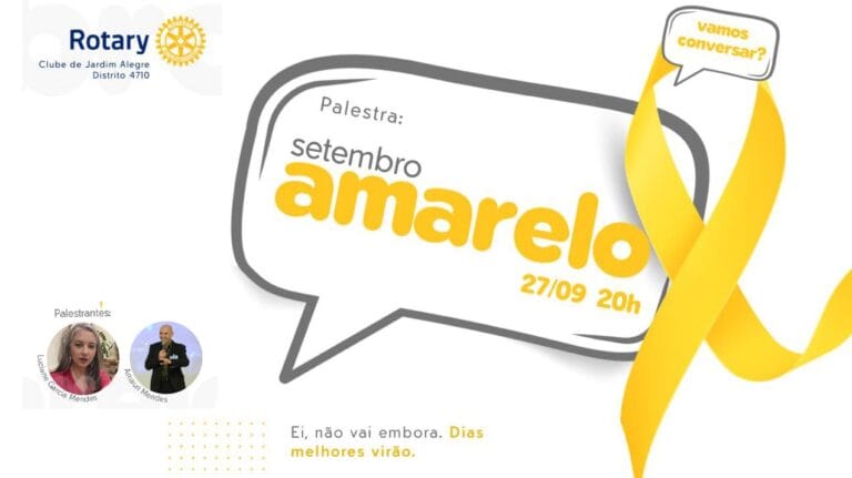 Na sexta-feira (27), o Rotary Club de Jardim Alegre vai promover uma palestra sobre saúde mental, focada na prevenção e no cuidado com a vida. O evento faz parte das ações do Setembro Amarelo e será realizado no Sindicato dos Trabalhadores Rurais, às 20 horas.