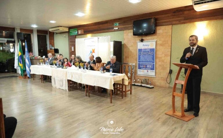 O governador assistente Clenilson Cavalheiro, que representou o governador do distrito 4710 Renato Egea, elogiou a gestão da presidente anterior, Márcia Lobo Farias, e destacou a importância da união dos membros para o fortalecimento do clube.