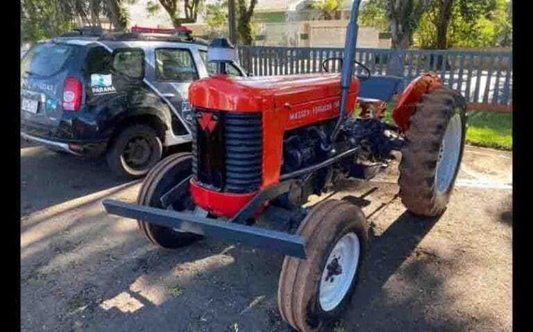 Um agricultor localizou um trator, ano 1973, que havia sido furtado de uma propriedade rural, há cerca de 20 dias. Ele conseguiu localizar o equipamento ao encontrar nas redes sociais um anúncio de venda do trator, um Massey Ferguson modelo 50x. O trator havia sido reformado e estava numa propriedade rural de Apucarana. O responsável, que diz ter adquirido de uma pessoa de Faxinal, foi preso por receptação.