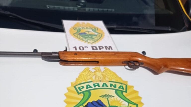 Na residência, estavam o autor do disparo, mais dois homens e duas mulheres. Nada de ilícito foi encontrado na busca pessoal, mas uma espingarda de pressão artesanalmente adaptada para o calibre 22 foi localizada no quarto dos fundos, entre dois colchões.
