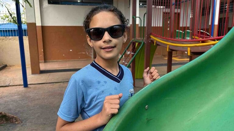 “Elizangela Moura Fabi, mãe da menina, reforçou a rapidez da adaptação. ‘Está sendo bem positivo lá em casa. Primeiro ela estava um pouco insegura, mas agora já pegou prática e está usando o equipamento normalmente.’ Ela destacou ainda que os óculos ajudam a menina em tarefas do dia a dia, como identificar cores das roupas. ‘É bem bom, vai ajudar bastante ela. Além disso, está aprendendo Braile com o próprio dispositivo.’”