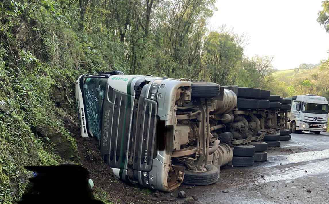 Segundo informações da Polícia Rodoviária de Pitanga, o acidente que ocorreu por volta das 8h50, envolveu um caminhão Scania/R 440 acoplado a dois semirreboques, ambos com placas de Ponta Grossa.
