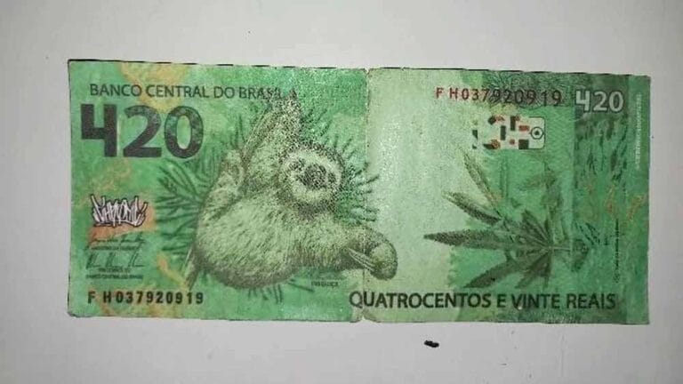 Uma cédula verde claro de R$ 420, com um bicho-preguiça estampado e desenhos de folha de maconha. Foi essa nota inusitada que os agentes da Polícia Militar (PM) encontraram com um traficante de drogas de Curitiba (PR). O caso foi registrado na quarta-feira (3), no bairro Boqueirão.