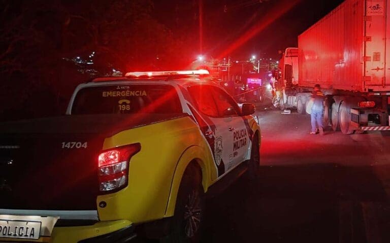 Segundo a Polícia Rodoviária Estadual (PRE), a batida envolveu um VW/Gol de Santo Antônio da Platina/PR, e uma caminhão VW/G25.460 com placas de Itajaí/SC.