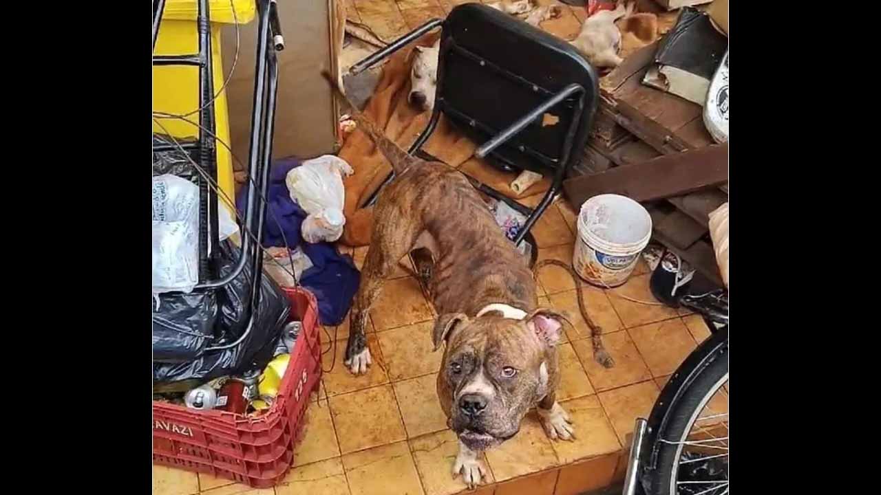 No local, os agentes encontraram dois cães no quintal, sendo que um já estava morto. Segundo informações dos agentes, o animal teria sido atacado pelos próprios cães na noite anterior. Outro cachorro foi localizado dentro da casa, também sem comida e água. O espaço estava tomado por lixo e era de difícil acesso.