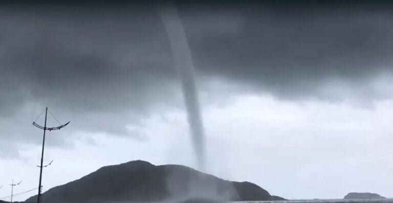 Por meio das imagens que circulam nas redes sociais é possível ver “cones” indo em direção à superfície da água. Especialistas afirmam que o fenômeno é similar a um tornado, mas acontece somente no mar ou rio. Ele se forma através de uma nuvem de tempestade.