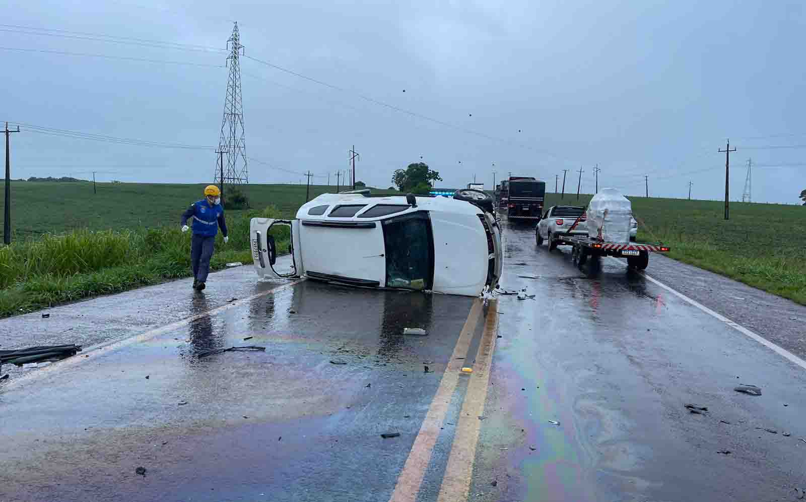 Após a batida a Renault Duster tombou no meio da pista, enquanto a Saveiro saiu da pista e caiu em um barranco às margens da rodovia.