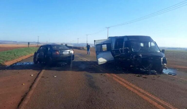 Uma pessoa morreu e outras seis ficaram feridas após um grave acidente entre um carro – Ford Fiesta – e uma van da dupla sertaneja Vitor e Alexandre. A colisão aconteceu na madrugada deste sábado (1º), por volta das 5h, na altura do km 79 da PR-486, em Assis Chateaubriand, no oeste do Paraná.