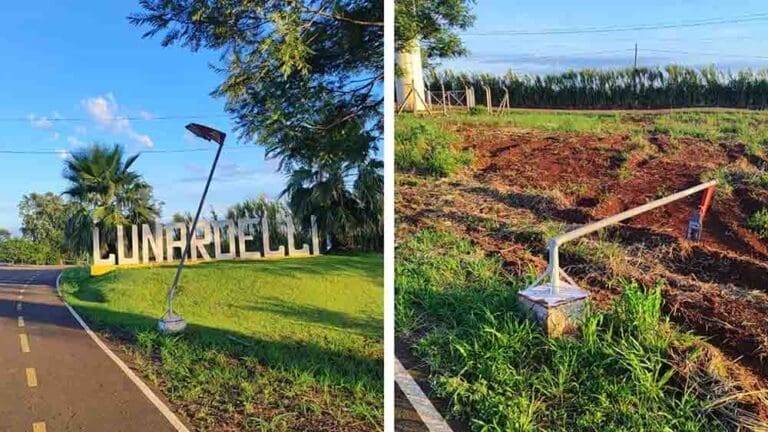 Os vândalos utilizaram força física para entortar os postes de alumínio, quebrar luminárias e colocar alguns no chão. O prejuízo causado ainda está sendo levantado pela prefeitura.