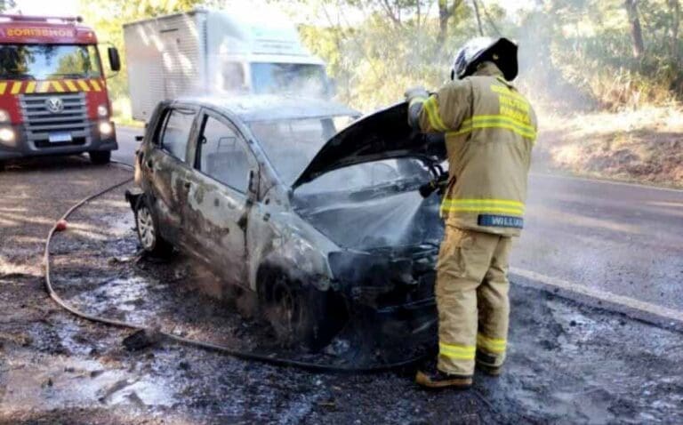 Um veículo VW Fox, de Itaipulândia foi destruído em um incêndio no início da manhã de segunda-feira (19). O fato foi registrado na rodovia PR-495, entre o distrito de Portão Ocoí, em Missal e o município de Medianeira.