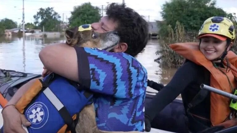 Um episódio emocionante ocorreu durante as ações de resgate em Novo Hamburgo, no Rio Grande do Sul. Um voluntário encontrou o próprio cachorro de estimação ilhado devido às inundações. O momento foi exibido pelo Fantástico desse domingo (11).